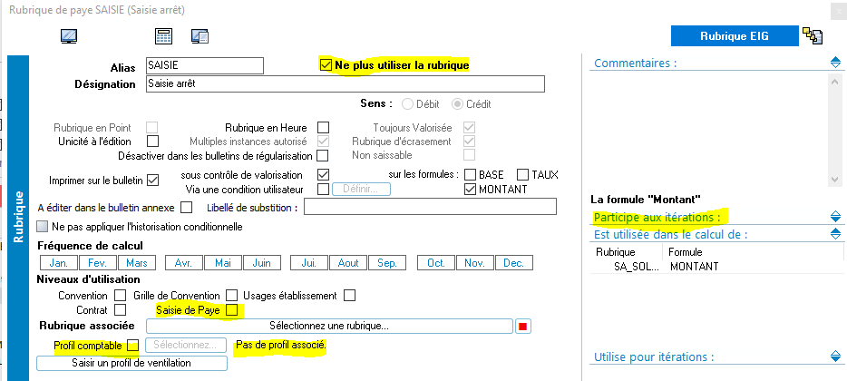 Ces rubriques ne sont pas saisissables en variable de paye, car elle sont utilisées par le module.