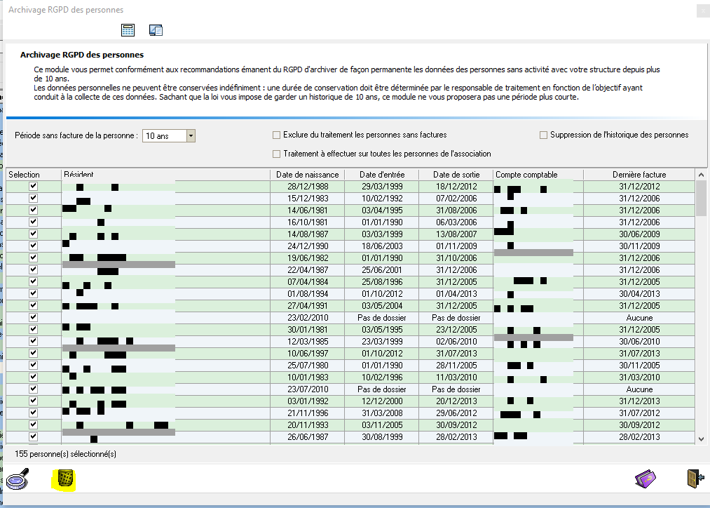 - D'effectuer le traitement sur toutes les personnes de l'association. A confirmer auprès de tous les intervenants de la facturation ou du responsable de la facturation ou de la sécurité des données au sein de l'association