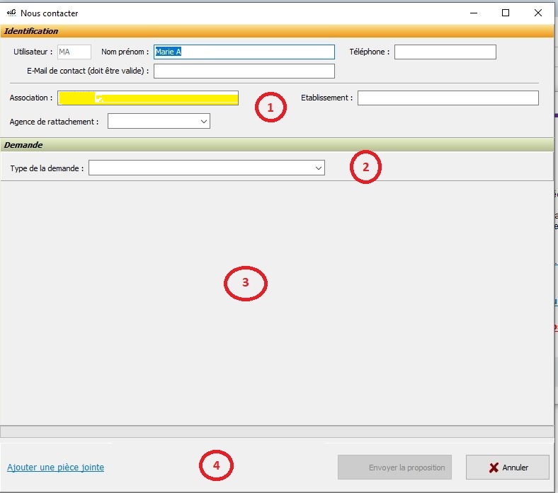 Ajouter une pièce jointe : cette option est présente dans le bas à gauche de l’écran sous forme de lien hypertexte de couleur cyan. Tout document officiel ou courrier permet de mieux comprendre la demande et de l’argumenter.