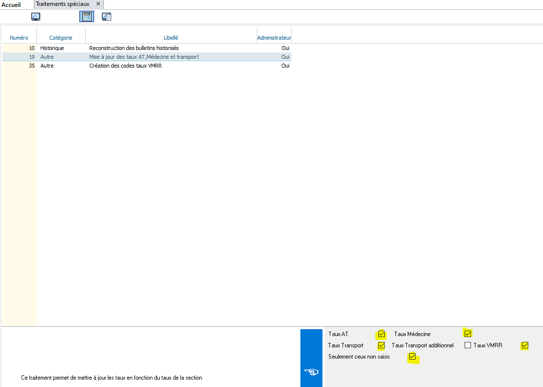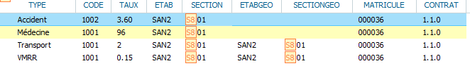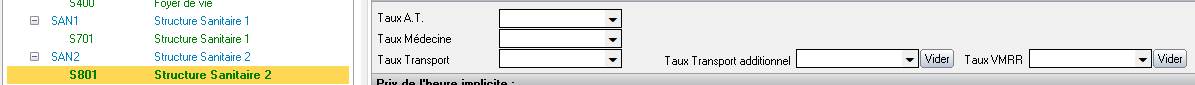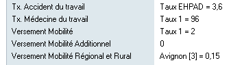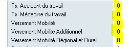 Il existe une fonctionnalité qui permet d'attribuer automatiquement les bons taux AT (accident du travail), médecine du travail et transport (versement mobilité) en les codifiant dans les paramètres de chaque section (Menu Paramètres Généraux, option Structures).