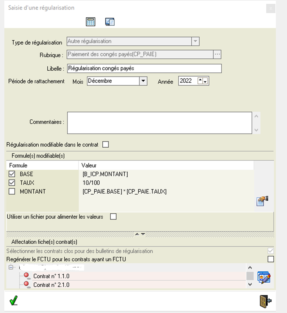 - Si vous avez bien fait attention, seules les personnes ayant un contrat en cours sont présentes dans la régularisation. Ceci signifie qu'il faudra procéder à une seconde régularisation pour les contrats clos.