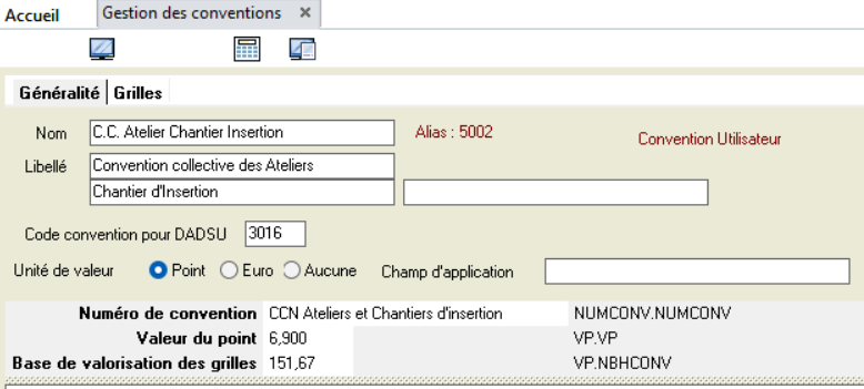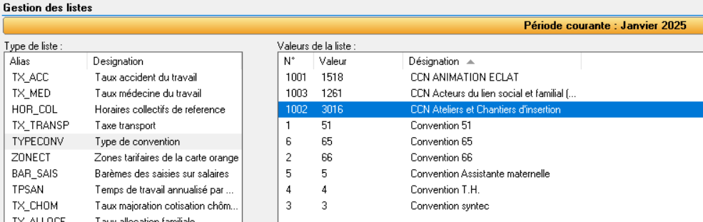 Il faut aller dans Paramètres généraux / Taux et valeurs / TYPECONV et ajouter la CCN Ateliers et Chantiers d'insertion :