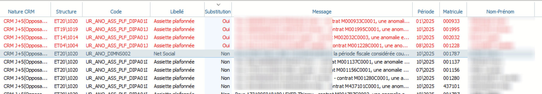 Dans l'écran CRM de synthèse, les anomalies "substituables" sont affichées en rouge ce qui permet d'avoir les anomalies les plus urgentes à corriger.