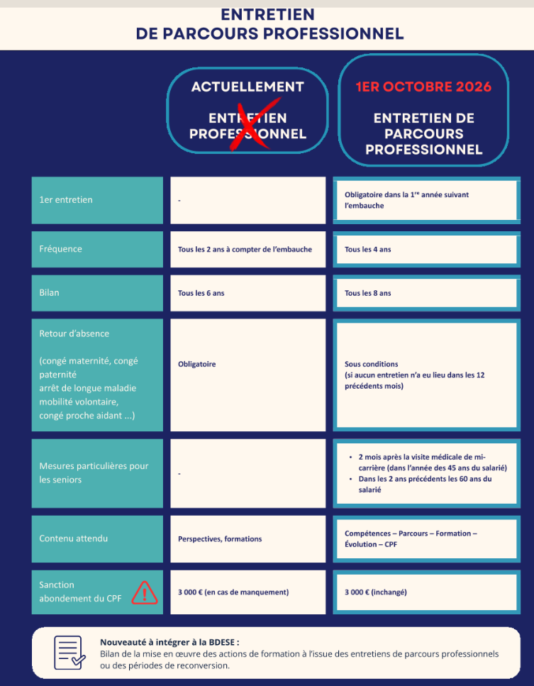 Nous nous sommes mis en conformité avec la législation sur la gestion des entretiens. En effet, les périodes sur lesquelles les entretiens doivent être organisés est en fonction de la date d'embauche.