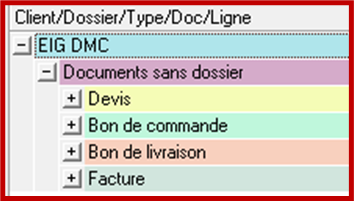 les niveaux inférieurs correspondent aux types de documents (devis, bon de commande, bon de livraison,facture,avoir)