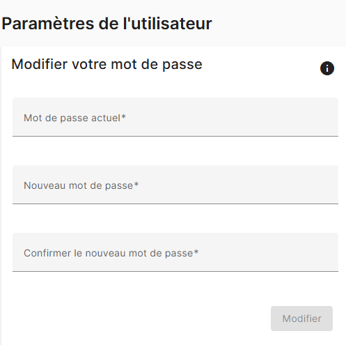 1 - Paramètres de l'utilisateur : modifier son mot de passe