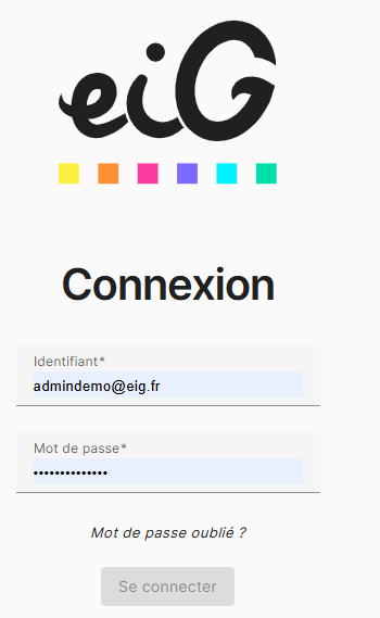 Votre compte utilisateur sera uniquement composé de votre adresse mail (par exemple accesGrh@eig.fr).