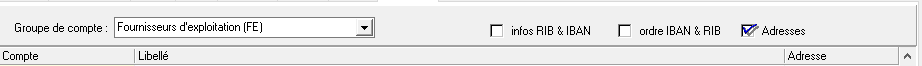 L'écran de saisie en liste est affiché pour ce groupe auxiliaire avec les valeurs des champs adresse existantes pour chaque compte.