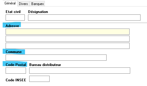 L'importation des valeurs d'adresse peut concerner tous les champs ou uniquement les champs vides de l'adresse dans la codification existante de chaque compte