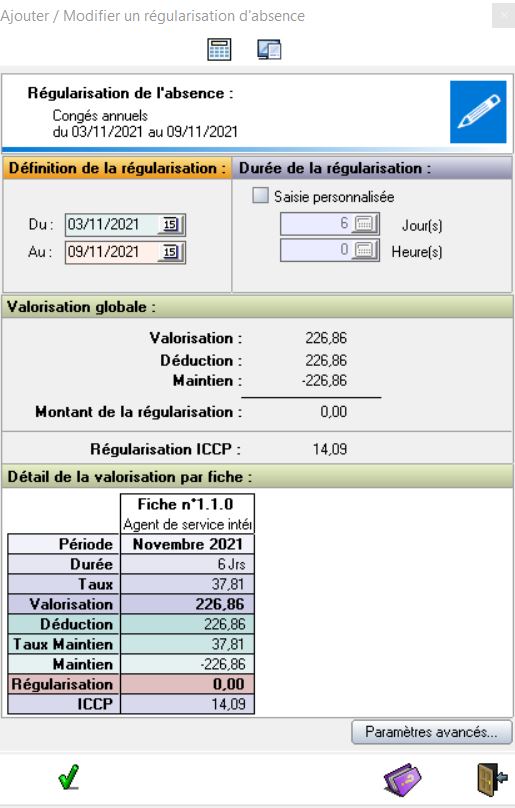 - La régularisation sera notifiée visuellement sous le congé traité. Si une rectification de l'indemnisation est nécessaire, elle sera inscrite sur le bulletin avec la notification de la période concernée.