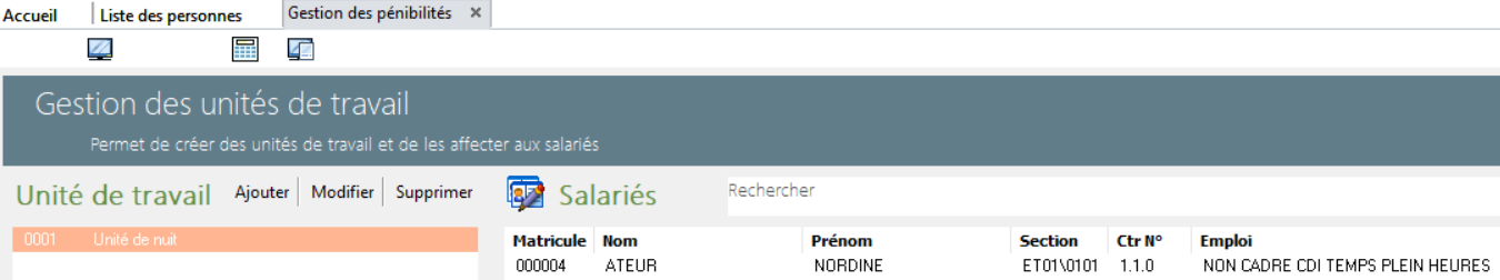 Créer une unité de travail et affecter le ou les salariés concernés.