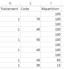 La colonne Répartition (T) correspond au pourcentage affecté au poste.