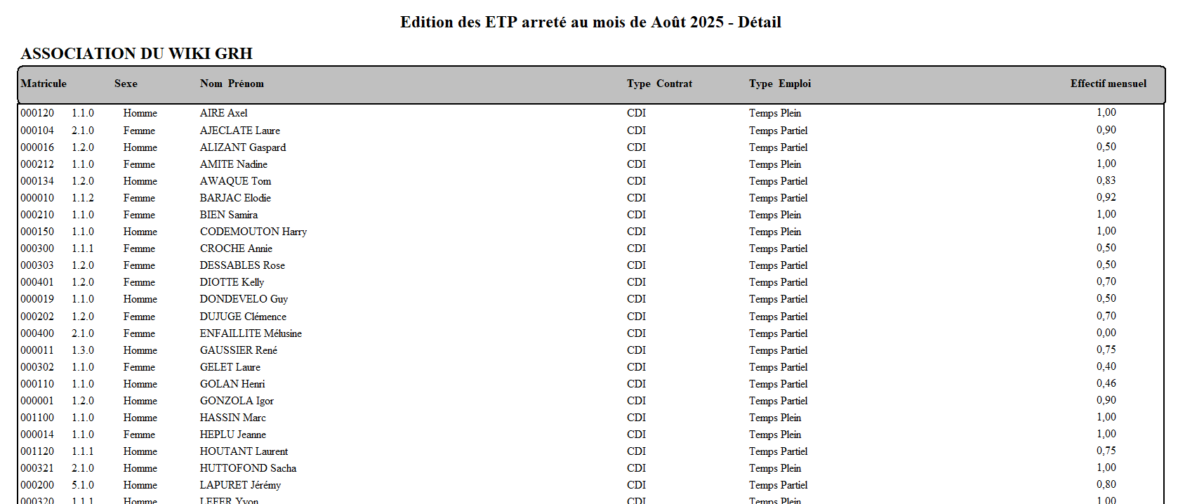 - ETP moyen annuel (non coché) ou ETP mensuel (coché). Pour obtenir les 2, il convient de faire 2 éditions distinctes.