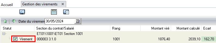 Virement de 1876,40 € du net à payer du Bulletin de paye Version 1