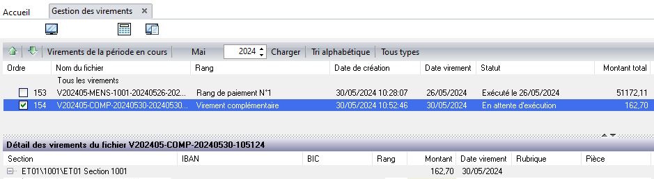 8) Faire la vérification des virements dans Traitements -> Règlements/Virements