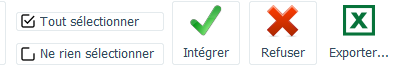 La partie droite de la barre d'action permet d'intégrer ou refuser les éléments de votre choix.