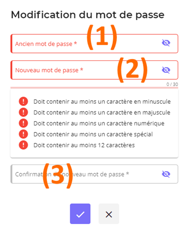 Saisissez à nouveau votre mot de passe pour confirmation (3).