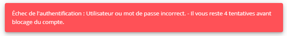Pour chaque tentative refusée, un message d'erreur est affiché et vous indique le nombre de tentatives restantes avant blocage.