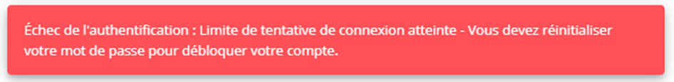 Si le nombre de tentatives autorisées est atteint, le compte est bloqué. Le message ci-dessous apparait.
